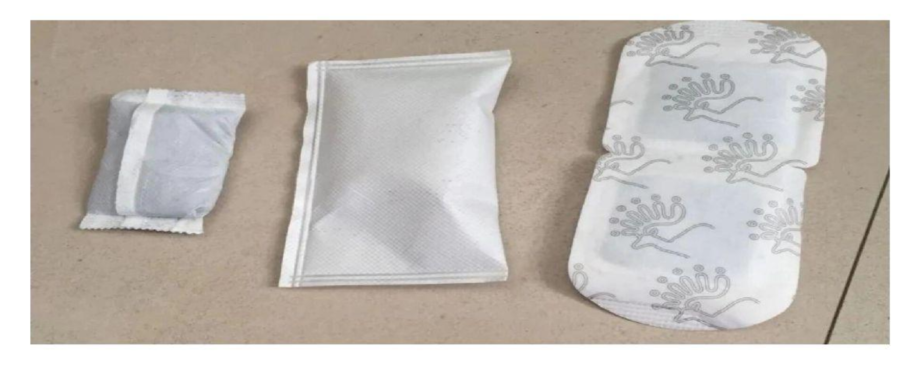 我用剪刀把它们的包装剪开,由于自热米饭的加热包已经和水混合在一起了就不拆开了。拆开包装明显可以看到蒸汽眼罩的包装比较厚而且细密,并且有两层;而暖手宝的内包装只有一层,且比较薄。两者相比,蒸汽眼罩的内包装相当于在暖手宝包装的基础上又加了一层厚实的外套(如图6、7所示)。
